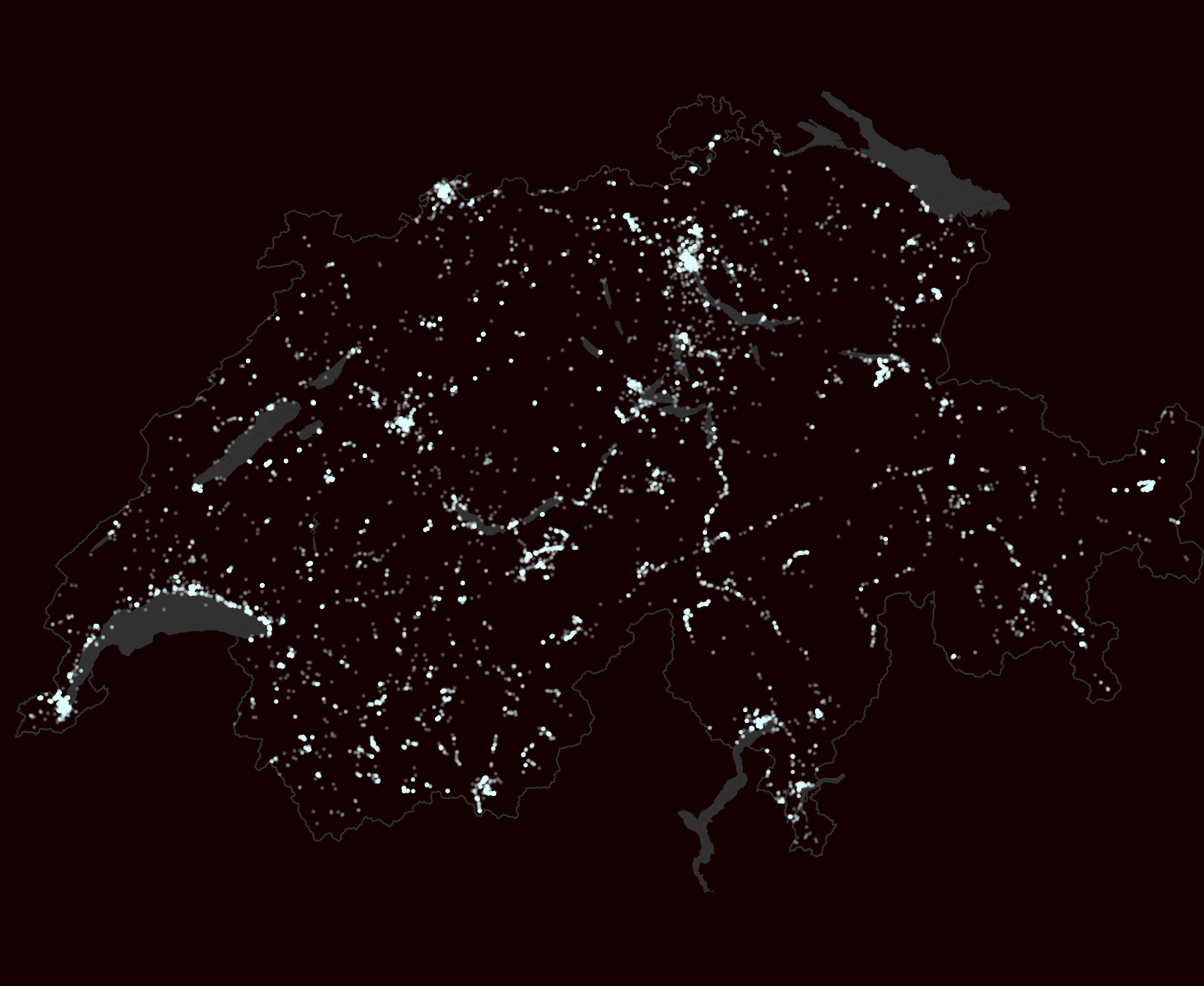 Geolocalização de 22433 fotografias tiradas na Suíça e enviados para o Flickr entre 1° de janeiro de 2014 e 14 de julho de 2016